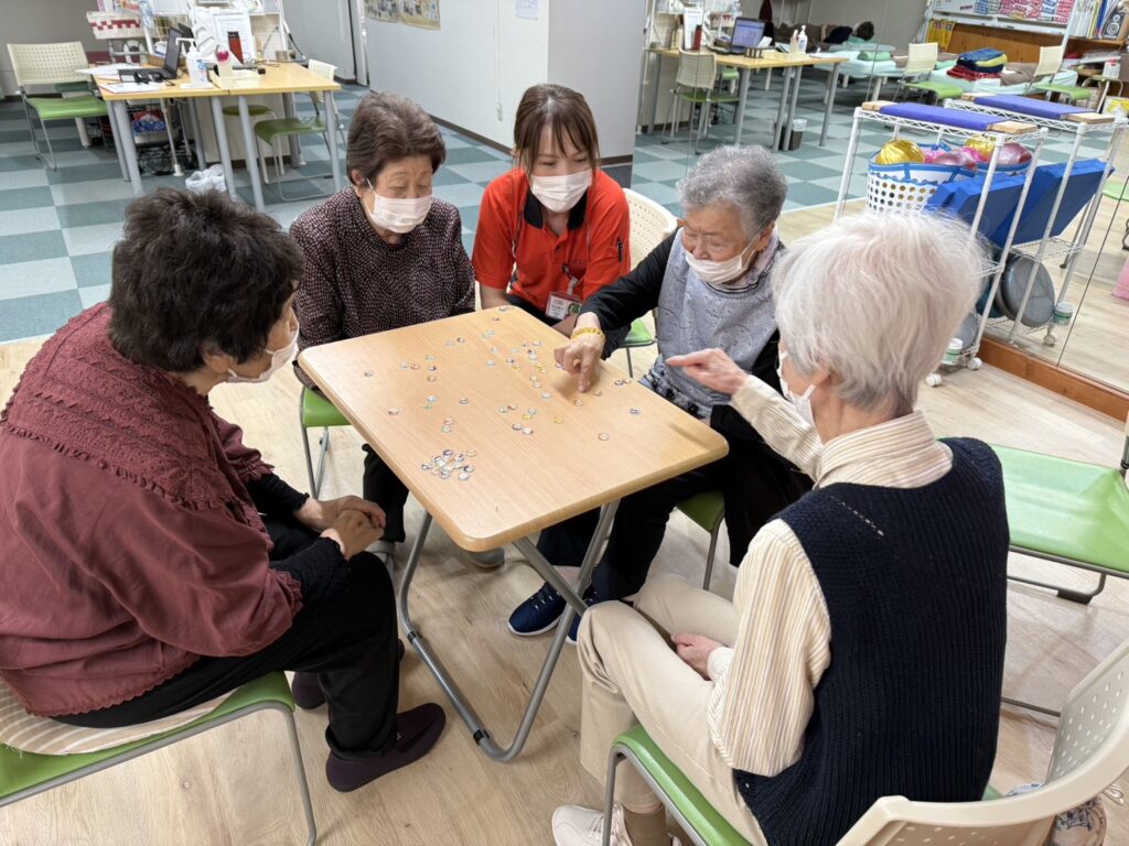 巧緻訓練として昔懐かしい「おはじき」をしました。年代やローカルルールなど多少やり方に違いはあったようですが、ベテランの少年少女のみなさんがキャッキャと楽しまれていました。