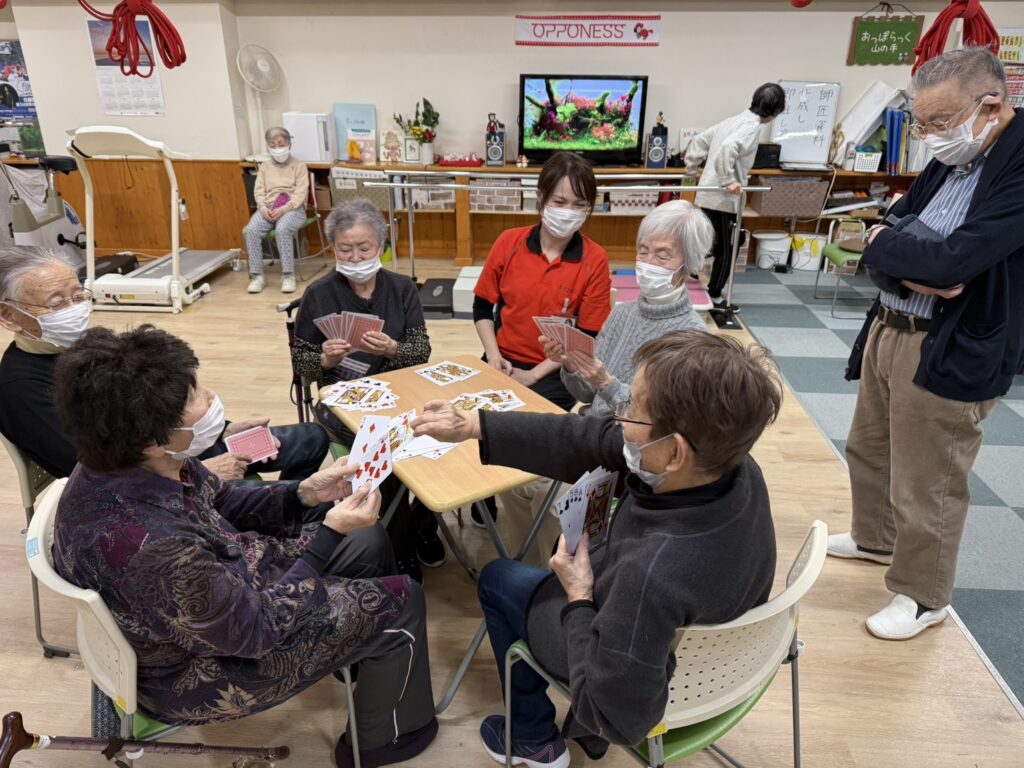 今週の脳トレは「ババ抜き」をしました。最初にカードが多く残っていても意外と一番に上がれたり、負けた人は早口言葉を言ったりと、キャッキャしながら楽しまれています。