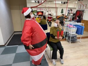今年もサンタの衣装でみなさんに楽しんでいただきました。季節の行事を楽しんでいただくこともいい活性化になりますね。