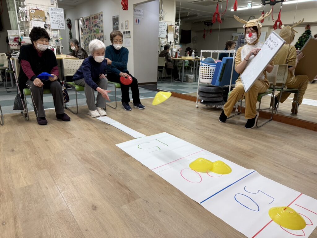 クリスマスパーティーにゲームは欠かせませんね!おっぽらっくオリジナルゲーム「スナップマーカー」に挑戦!マーカーを飛ばして高得点を狙います。みなさん大興奮でした。