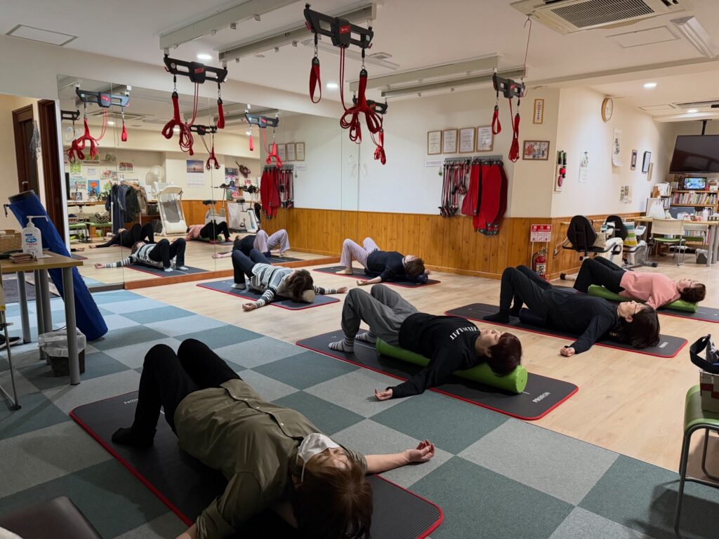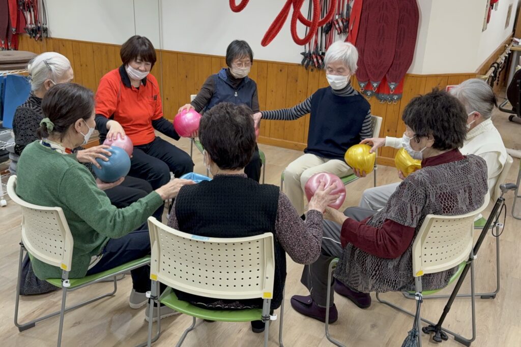 コチラはボール回しに挑戦!3の倍数で逆回転にというルールは、カラダもアタマも混乱して活性化になりますね!