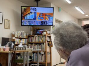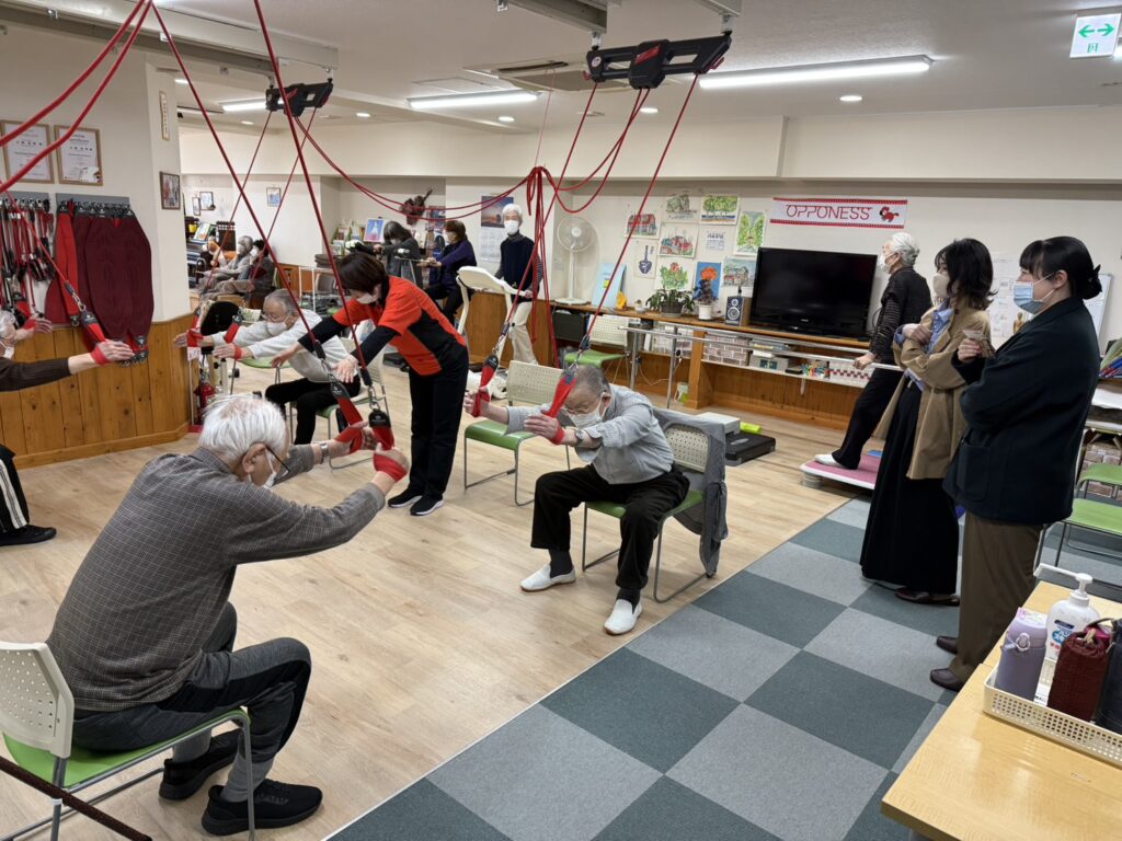 包括支援センターから新しい職員の方がご挨拶に来てくださったので、おっぽらっく山の手のサービスの様子を見ていただきました。美人のケアマネさんがいるためか、ご利用者様もいつもより熱心にレッドコードされていました。