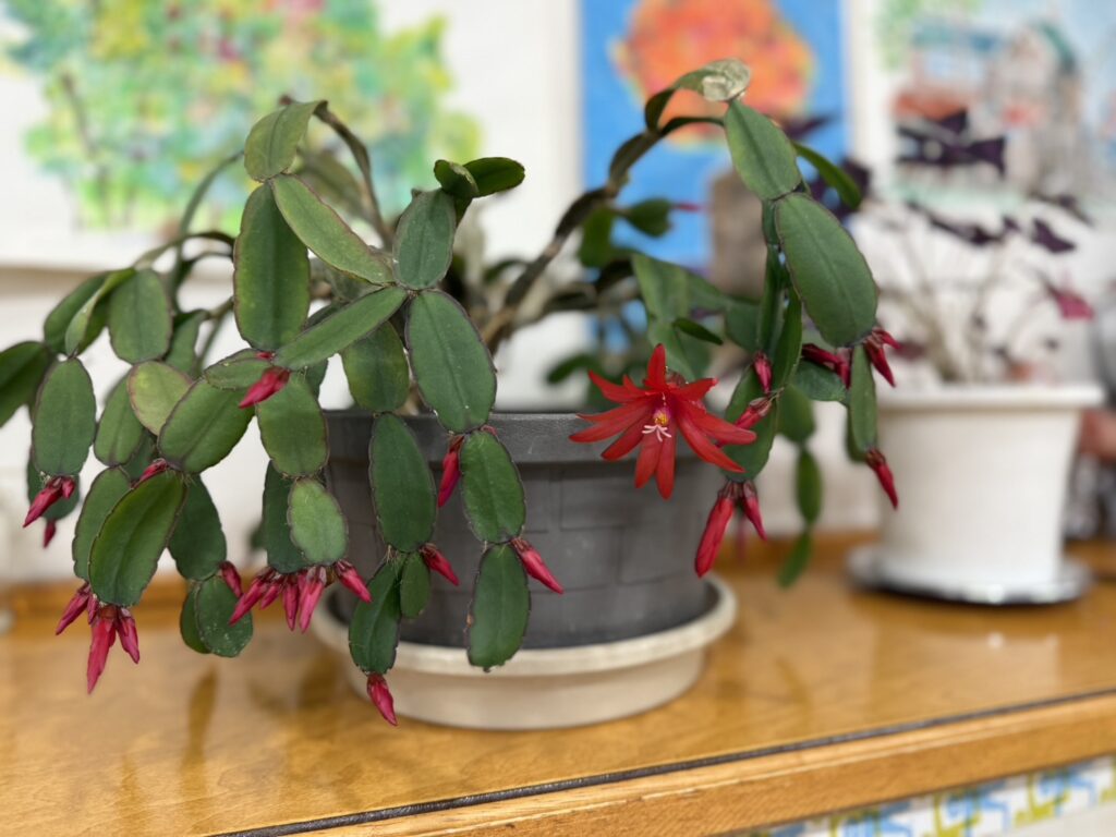 ジャコバサボテン通称「カニサボテン」の花が咲きました!毎年真っ赤なかわいい花を咲かせてくれています。※カニとついていますが食べられません。