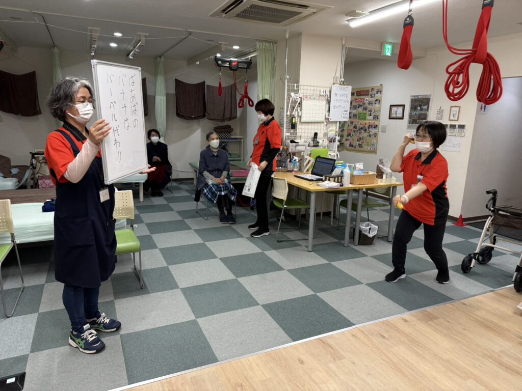今週の口の準備体操は、早口言葉「ばあばのバナナはバーベル代わり」と、アクション付きで元気に始まりました。