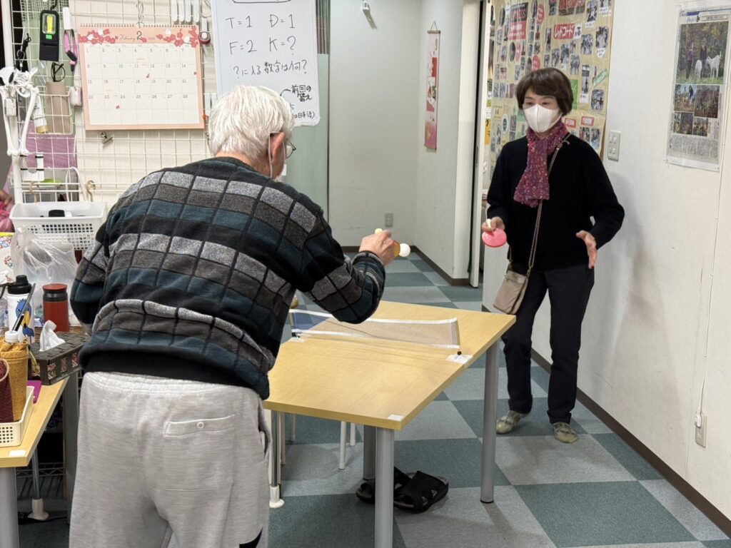 こちらは夏季オリンピックの種目「卓球」に取り組まれています。以前は区の体育館で卓球をされていたというご利用者様。久しぶりの卓球でスマッシュ!!