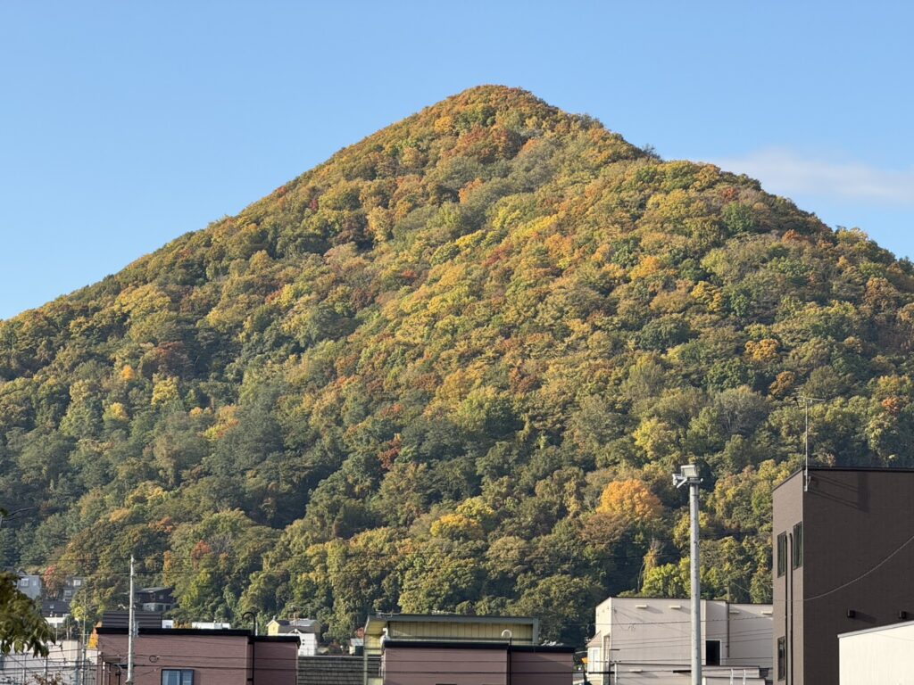 こちらは全国ニュースでも話題となっている「西区山の手」から見る三角山です。紅葉が見ごろとなっています。