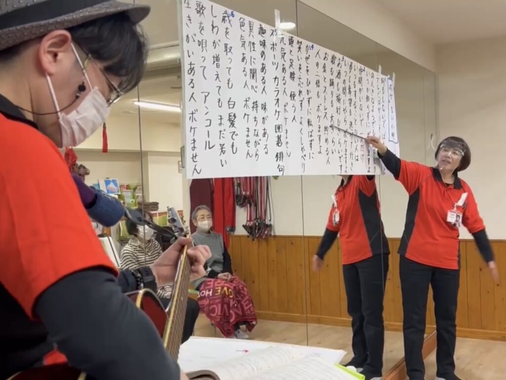 今週の口腔体操では「お座敷小唄」の替え歌「ボケない小唄」をギターにあわせて大合唱!作詞者不明ですが、よくできた歌詞にみなさん大盛り上がりでした!