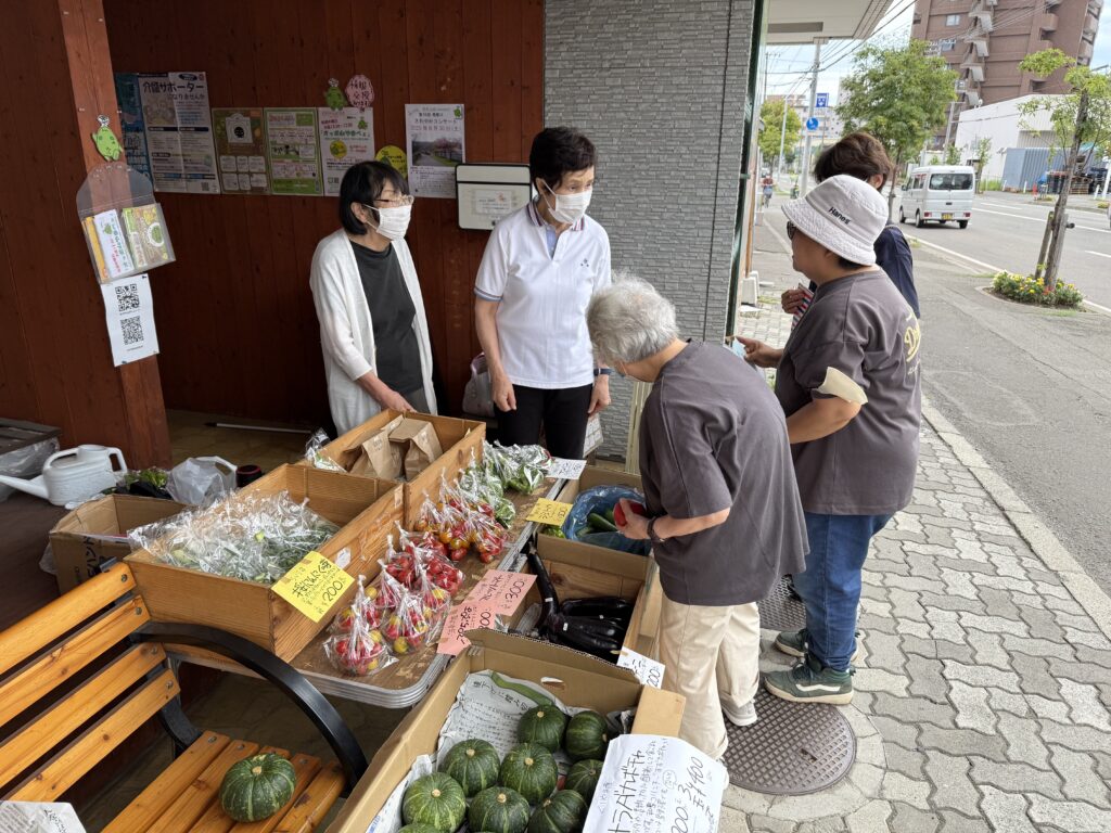 今週はEarth Art Project SAPPOROさんによる先人マルシェが開催されました。今回の目玉は「鈴カボチャ」でした。サラダカボチャとも呼ばれ皮ごと生で食べられる品種です。ご利用者様も興味津々でお買い物を楽しまれていました。