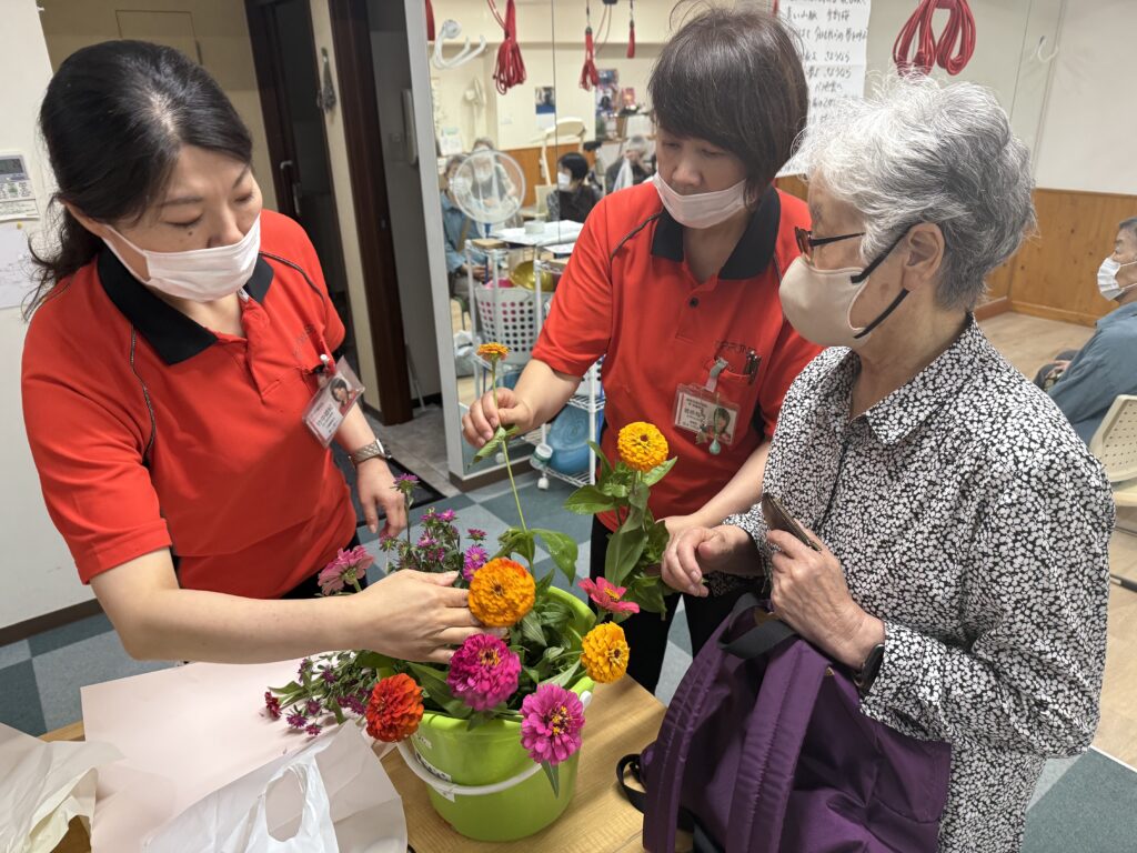 お花も咲きました!百日草やアスターなどご利用者様にもお分けすることが出来ました。