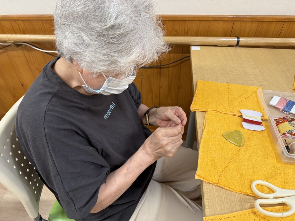 こちらは巧緻訓練を兼ねた雑巾縫いに取り組まれています。糸通しも集中力がいりますね。おっぽらっく山の手では様々な巧緻訓練グッズをご用意しています。