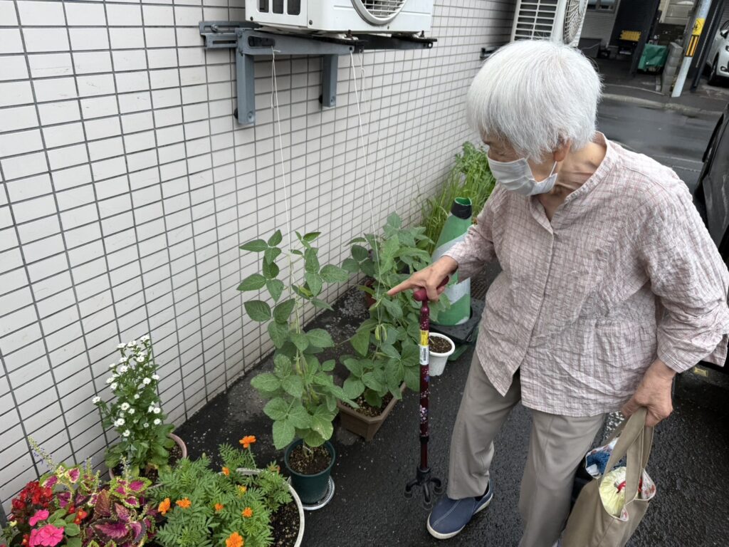 店舗前のプランターには「枝豆」が実っております。この季節にいい味覚ですね!