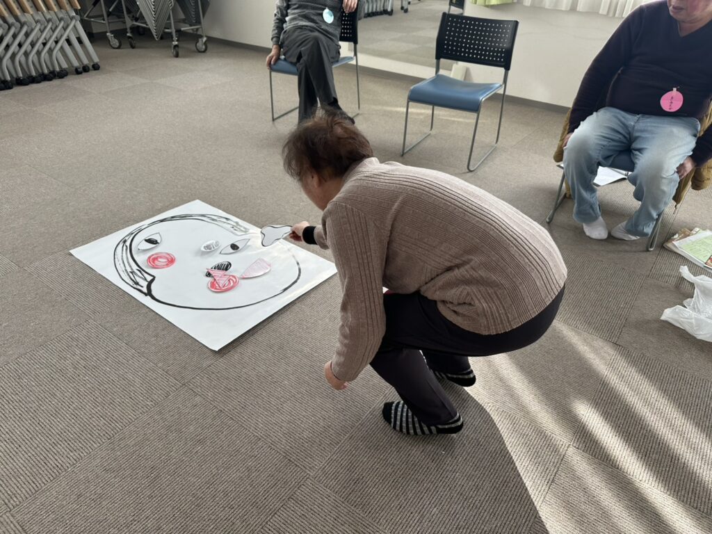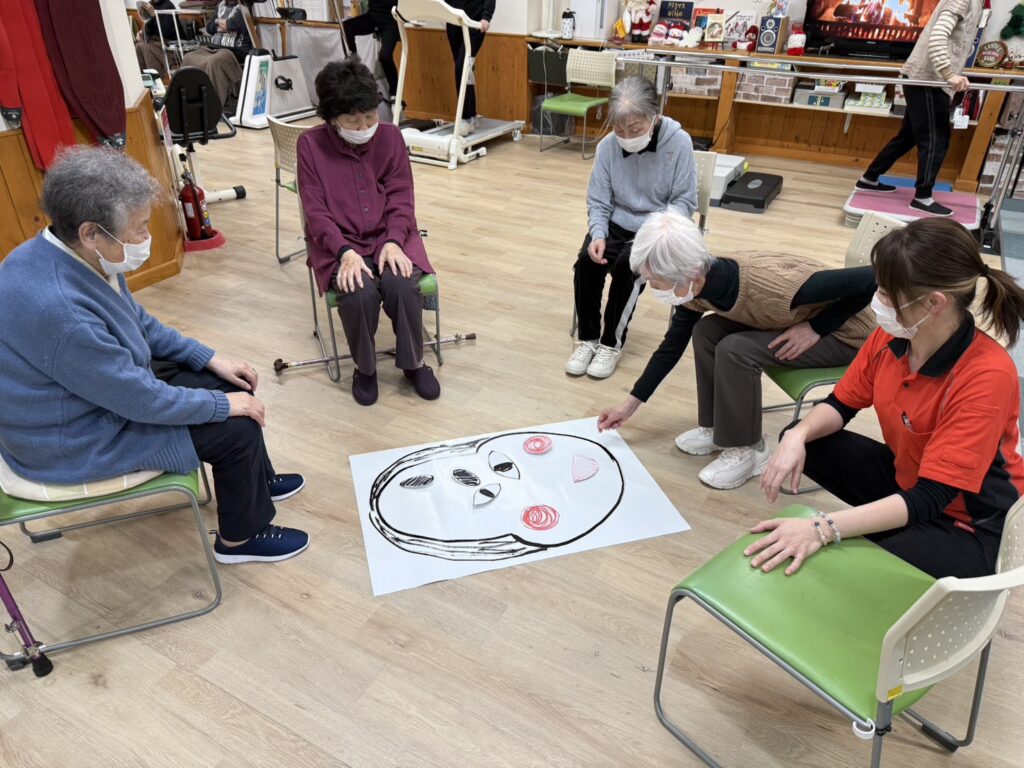 クリスマスを前にお正月の準備!?大きな福笑いが登場しました。年明けのレクが楽しみですね!